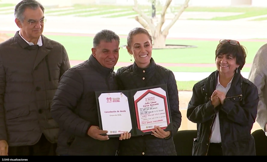 En el marco del acto, la presidenta Sheinbaum entregó escrituras de cancelación de adeudos a familias que arrastraban deudas desde hace décadas, como parte del programa de apoyo para regularizar su patrimonio y brindar certeza jurídica.