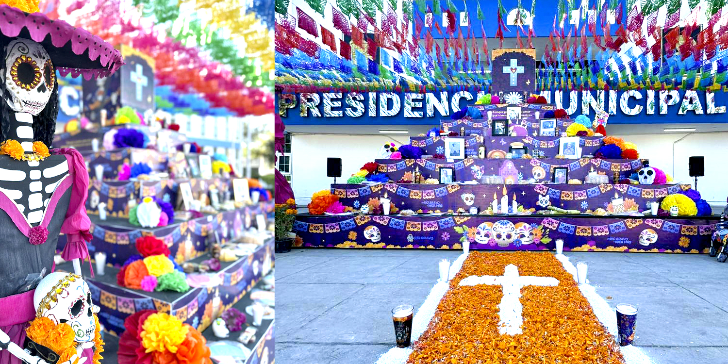 El altar, decorado con flores de cempasúchil, veladoras y ofrendas típicas, simboliza el respeto y amor hacia quienes ya no están, reafirmando la importancia de mantener vivas las tradiciones culturales en Río Bravo.