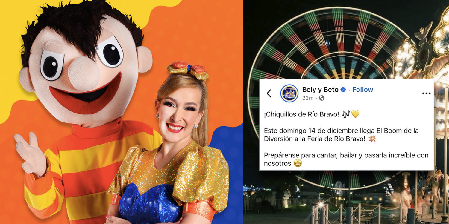 El alcalde Miguel Ángel Almaraz, junto con la página oficial de Bely y Beto, confirmaron la participación del popular dúo infantil en la Feria de Río Bravo 2025, donde se presentarán el próximo 14 de diciembre en el Teatro del Pueblo.
