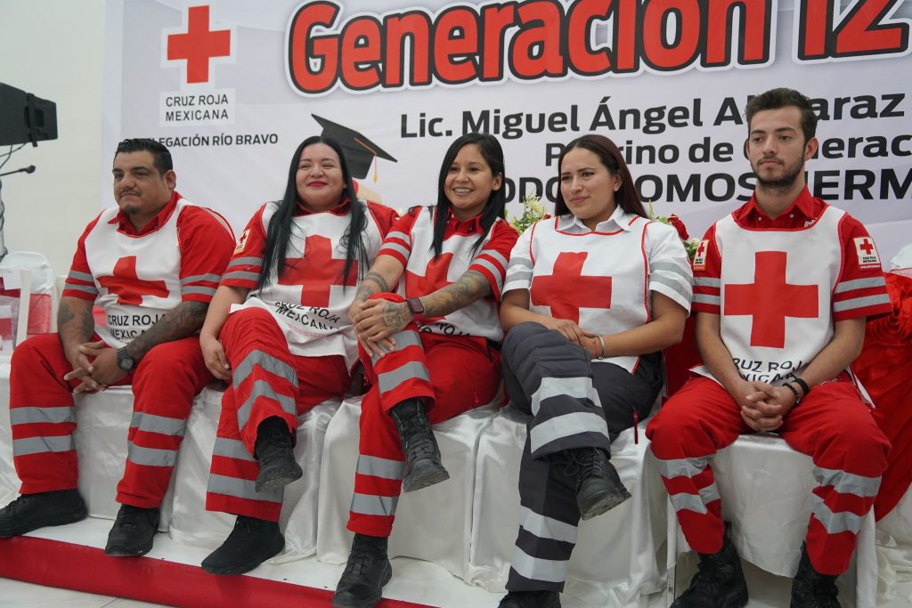 La ceremonia contó con la presencia de Hugo Soto Olivares, presidente de Cruz Roja Río Bravo, y María Noelia Cantú de Millán, vicepresidenta, quienes destacaron la gran responsabilidad que asumen los nuevos paramédicos al ser la primera respuesta en situaciones de emergencia.