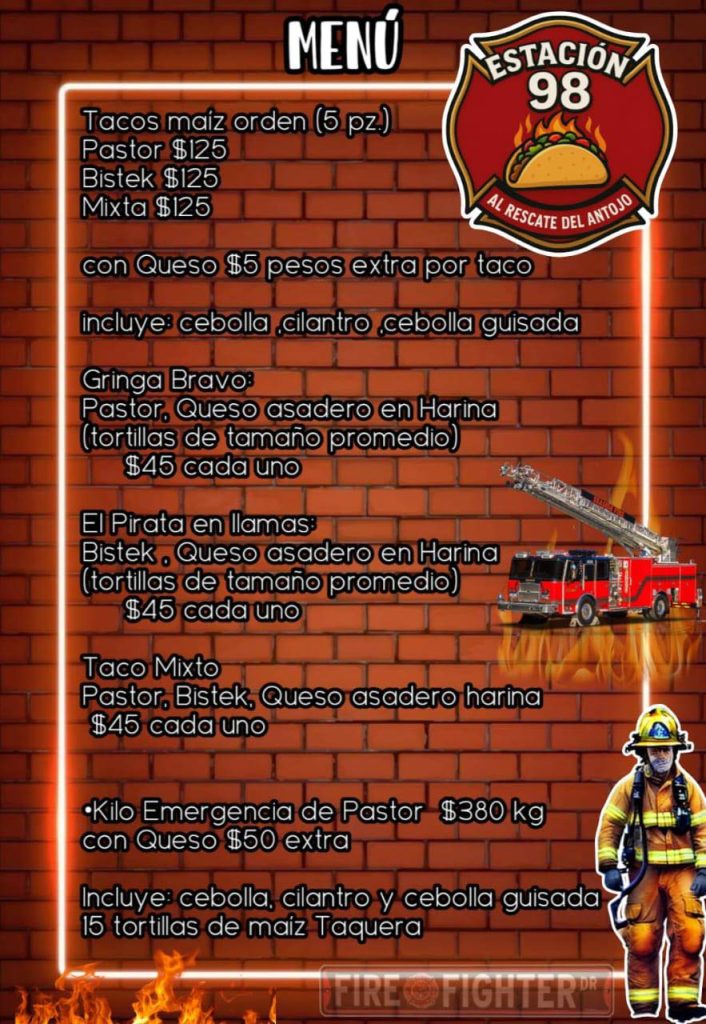 El menú cuenta con una amplia variedad de opciones que incluyen tacos de pastor, bistec y mixtos, además de especialidades como las Gringas Bravo, El Pirata en Llamas y pastor por kilo, ideal para quienes desean compartir con familia o amigos.