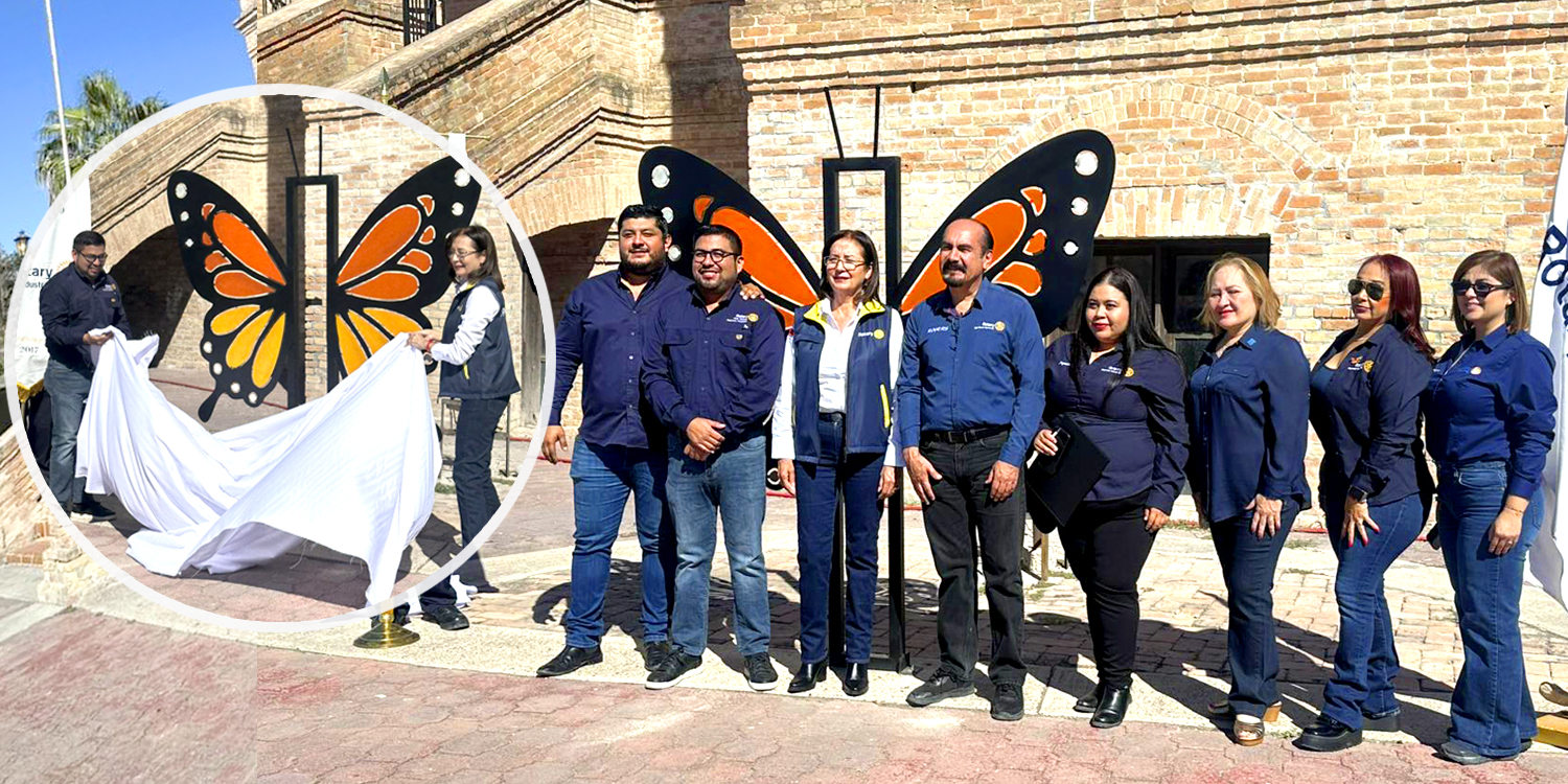 El Club Rotary Industrial llevó a cabo la develación de una estructura con forma de alas de mariposa Monarca en la Casa de Ladrillo de Río Bravo, como parte de una iniciativa destinada a promover el cuidado y la preservación de esta especie emblemática.