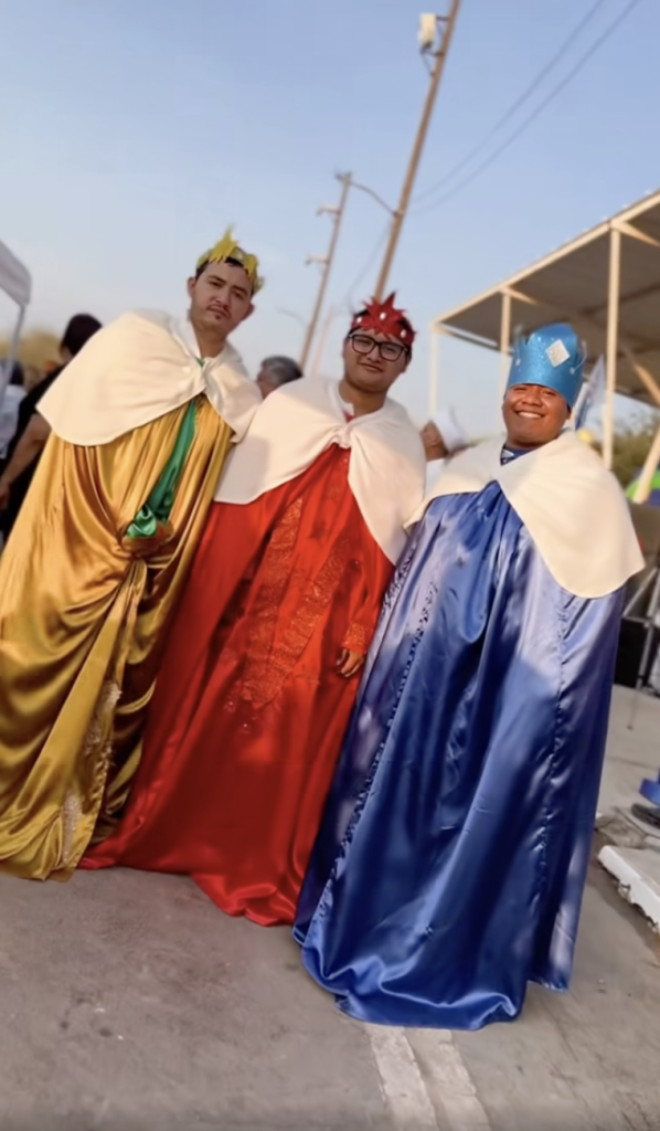 Los tres reyes magos fueron vistos en las inmediaciones, tomándose fotos con los pequeños ahí presentes.